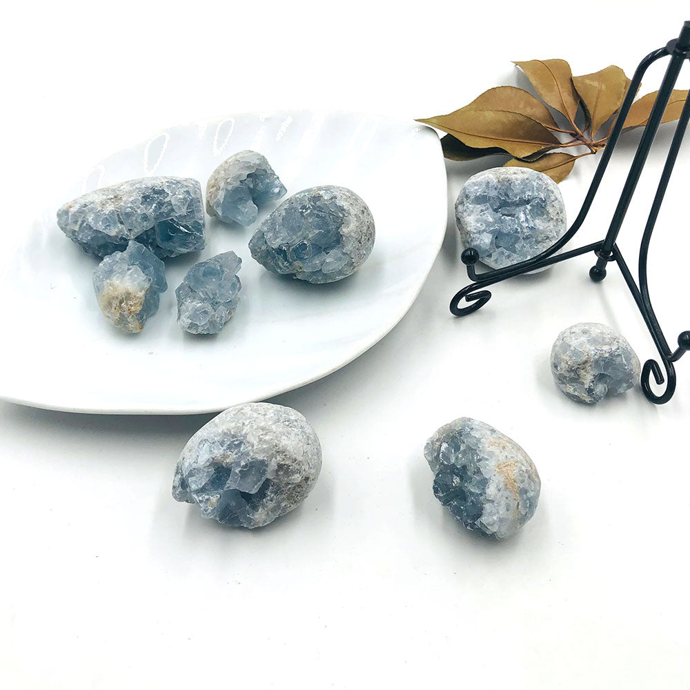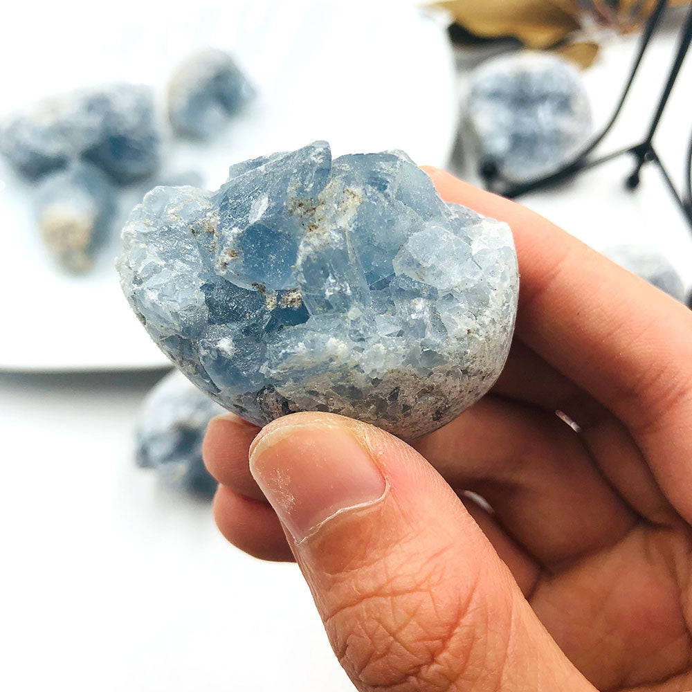 1PC Random Natural Raw Blue Celestite Quartz Crystal Cluster Healing Stones Specimen Home Decoration Crafts Ornament Druzy Geode