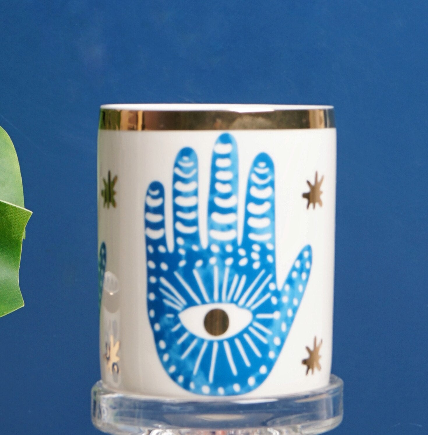 Creative Hands Eyes Plate with Gold Rim Ceramic Dinnerware Dessert Cake Dishes Coffee Cups Indian Style Totem Serving Tray