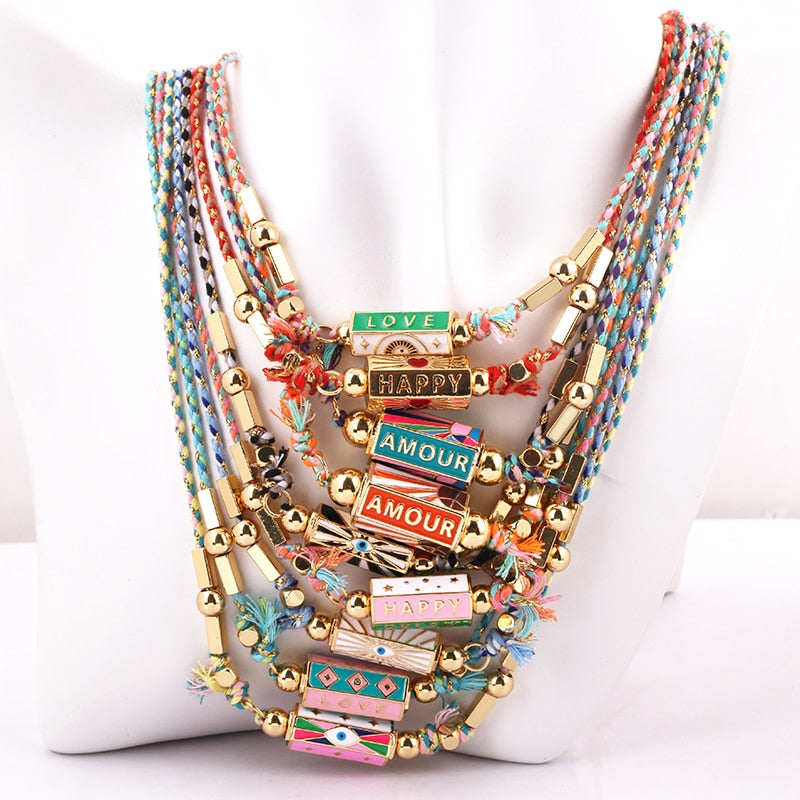 Evil Eye Necklace Amour Turkish Blue Pink Long Knotting Beaded Boho Jewelry,Women Sweater Amulet Party Summer Beach Gift For Her