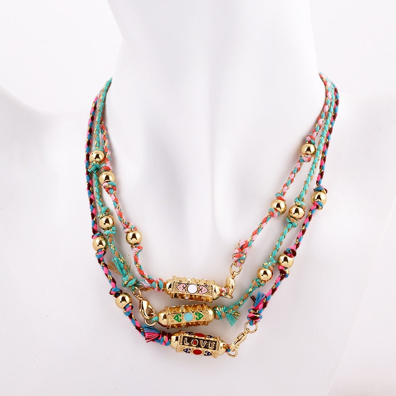 Nature Cotton Cord Love Knotting Lobster Necklace,Pink/Green/Blue Fashion Jewelry Party Summer Beach Gift For Her